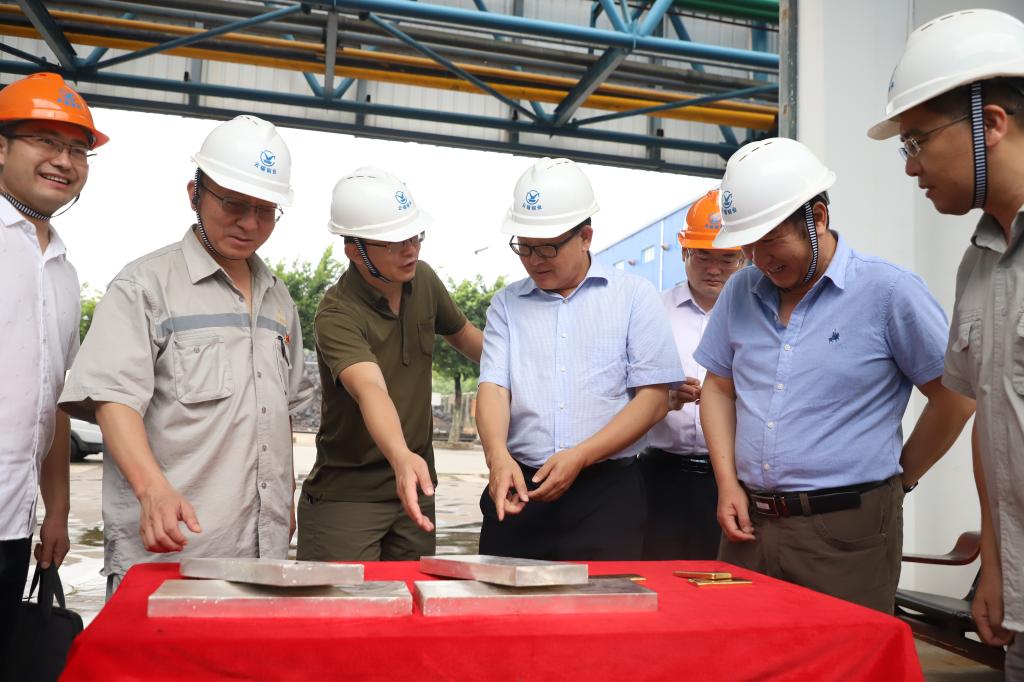 錫業(yè)股份副總經(jīng)理吳建勛,銅業(yè)分公司黨委書記郭建平,黨委副書記、經(jīng)理陳鋼,州商務(wù)局局長和濤參加調(diào)研。