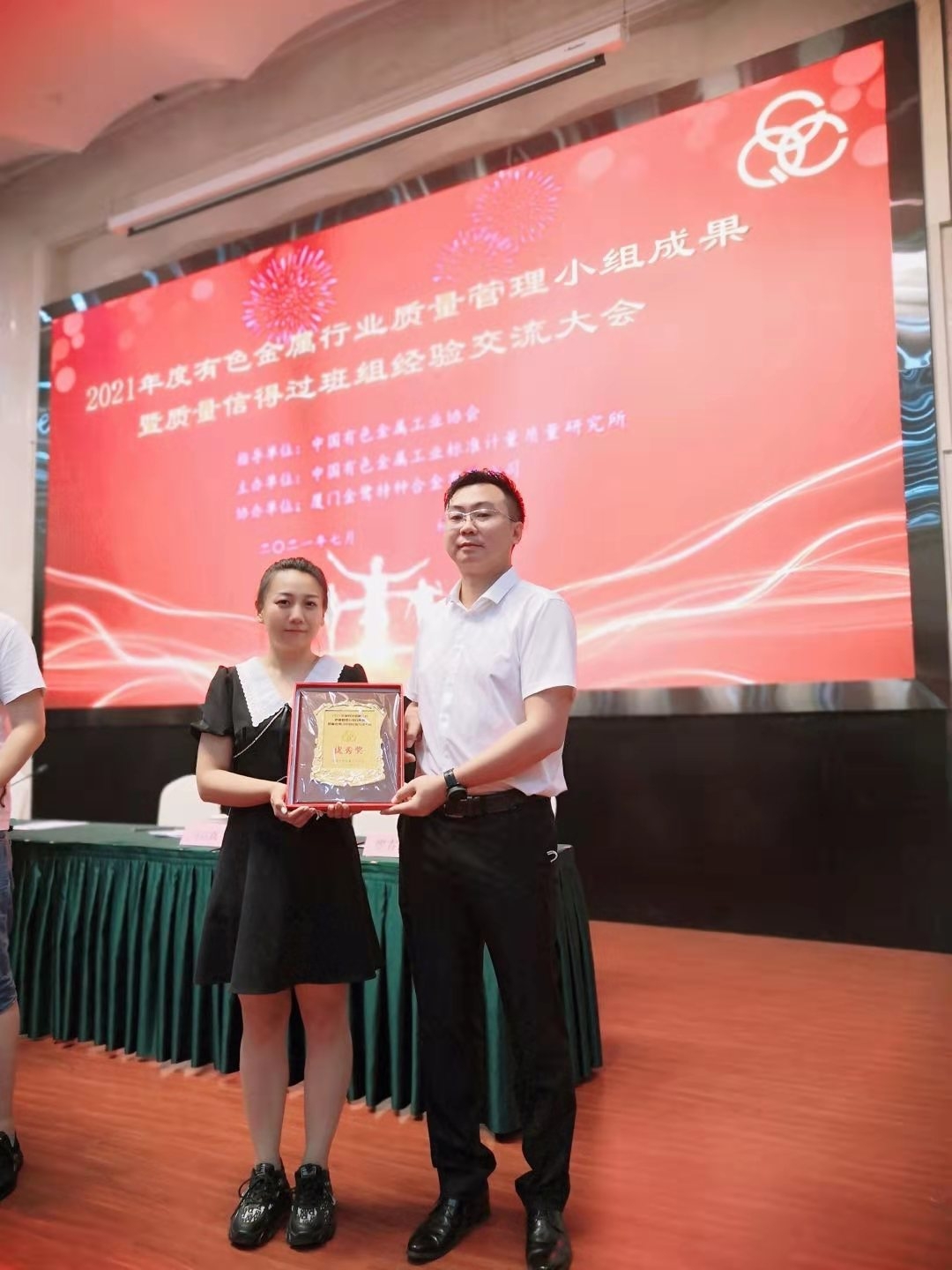 7月20日-22日,2021年度中國有色金屬行業(yè)質(zhì)量管理小組成果暨質(zhì)量信得過班組經(jīng)驗交流大會在廈門舉行,老廠分公司、銅業(yè)分公司參評QC項目從全國195個成果中脫穎而出,獲評大會優(yōu)秀。