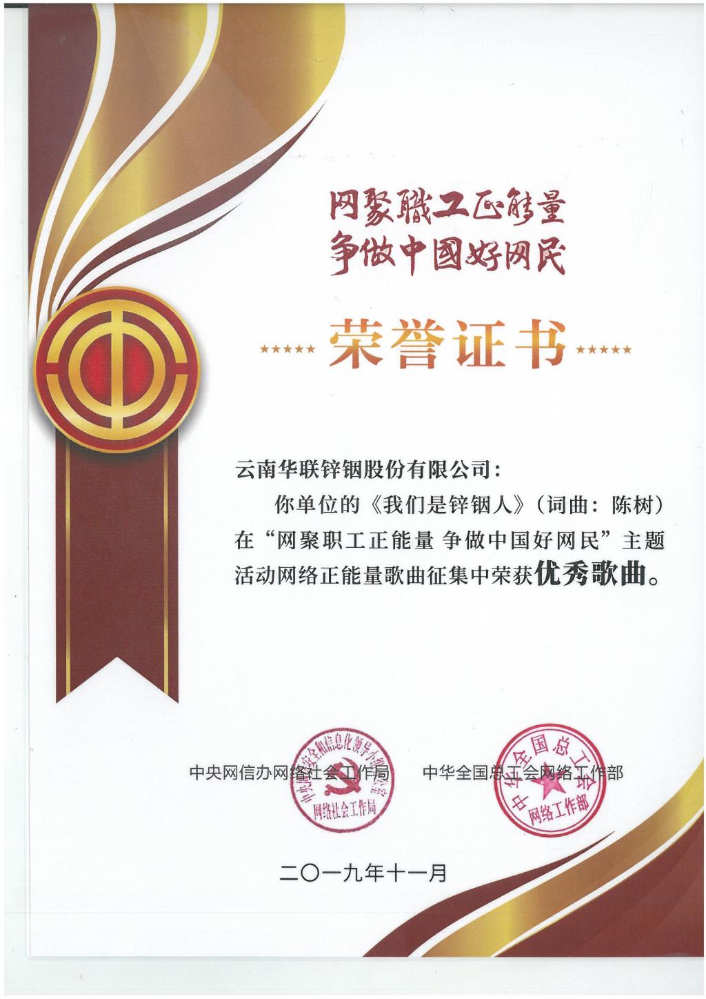 近期,華聯(lián)鋅銦公司形象歌曲—《我們是鋅銦人》MV在全國“網聚職工正能量 爭做中國好網民”主題活動網絡正能量歌曲征集中榮獲優(yōu)秀歌曲。