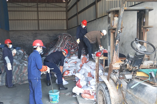 為確保銅渣順利發(fā)運(yùn),云湘黨支部急生產(chǎn)之所急,迅速組織由黨員和業(yè)務(wù)骨干組成8人突擊隊(duì),于11月21日、22日投入到緊張裝卸任務(wù)中。在場地狹窄、大型設(shè)備施展不開等問題下,只能依托人工背運(yùn)到叉車,再通過叉車轉(zhuǎn)運(yùn)到卡車,銅渣一袋凈重30公斤,需要來回翻騰兩次,沒開工多久,突擊隊(duì)員已汗流浹背,氣喘吁吁。盡管如此,突擊隊(duì)員一直緊咬牙關(guān),不顧灰塵,不顧呼出的熱氣模糊了眼鏡,不顧大滴的汗水從安全帽流出,一鼓作氣把60多噸銅渣及時補(bǔ)裝到位,保證銅渣銷售外運(yùn)工作正常開展。