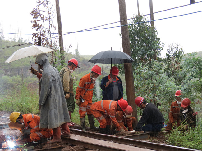 老廠分公司紅塘子鐵道運輸線路是馬鹿塘坑出礦的主要運輸線路,承擔(dān)著80%的礦量運輸任務(wù)。8月3日,由于連續(xù)多日強(qiáng)降雨,老廠分公司紅塘子鐵道運輸線路段出現(xiàn)局部陷落問題,運輸線路生產(chǎn)受阻。對此,敢打硬仗的馬坑干部職工在洪災(zāi)面前不氣餒,困難面前不低頭,以泰山壓頂不彎腰的氣魄與暴雨奮力搏斗,經(jīng)受住了一場特殊的考驗,譜寫了一曲“狂風(fēng)暴雪何所懼,奮力抗災(zāi)保生產(chǎn)”的樂章。
