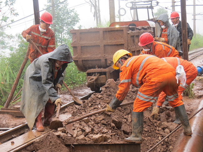 歷時3天,20余名搶修人員經(jīng)受了重重考驗,充填石碴340多立方,利用廢舊水泥枕木110根、沙袋60余袋,有效排除了險情。
