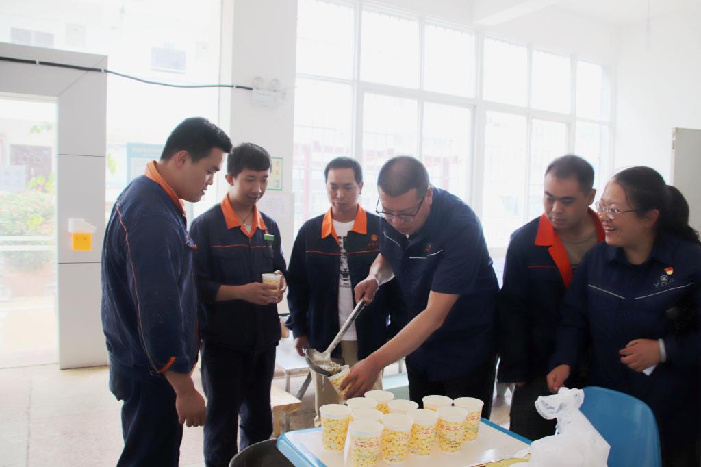 “輔助抱團(tuán)”活力四射。“每天看一下自己班的成績,哪方面存在不足,在接下來的工作中就要多想辦法,決不能給班組丟分”坑口食堂班組的負(fù)責(zé)人說道。像這樣的小班組在輔助工序有多個,“每天在小班組之間進(jìn)行競賽,以月為統(tǒng)計單位,計算每天的服務(wù)質(zhì)量。我們會對競賽結(jié)果通過微信群進(jìn)行季度通報,不斷增強組員干事創(chuàng)業(yè)的緊迫感和責(zé)任感?!薄氨R未動,糧草先行”。為確保競賽目標(biāo)順利完成,坑口大力開展防暑降溫宣傳教育,切實提高工友防暑安全意識;確保用電設(shè)備設(shè)施安全,多措并舉改善工友作業(yè)環(huán)境;適時調(diào)整夏季高溫作業(yè)勞動和作息時間,確保工友人身安全。部門工會為職工送去綠豆湯、方便面、壓縮干糧等慰問品,并為參賽工區(qū)(隊組)配置部分微波爐、電磁爐、熱水壺及部分急救藥品,積極做好后勤保障,號召每一名管理人員、工友鼓足干勁、迎難而上,以嶄新姿態(tài)積極投身勞動競賽中,用激情和汗水創(chuàng)造不平凡的勞動業(yè)績。