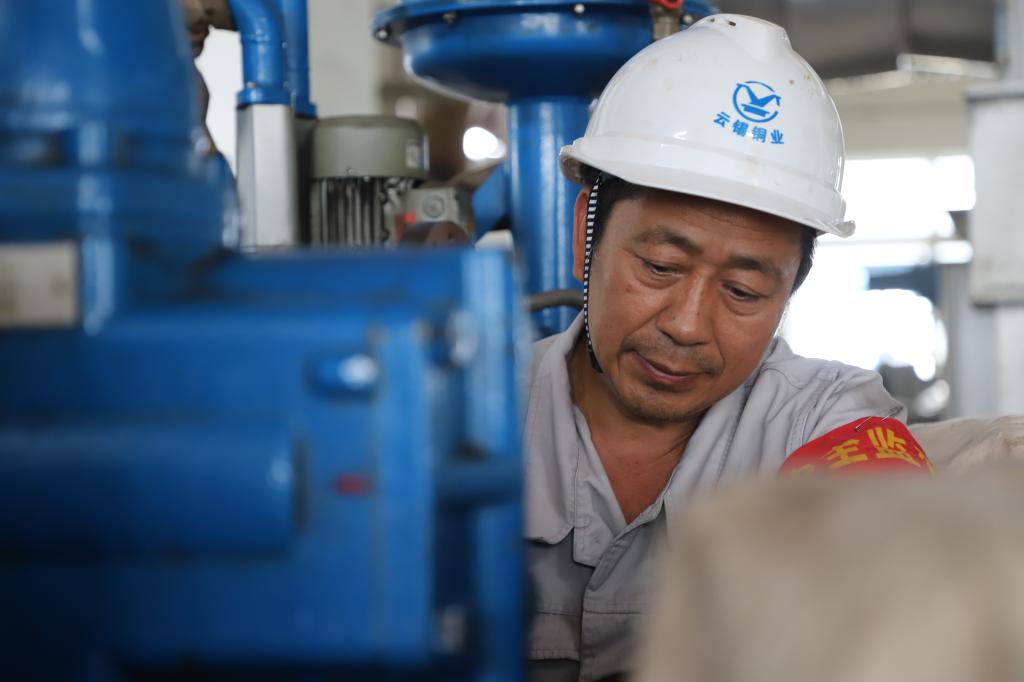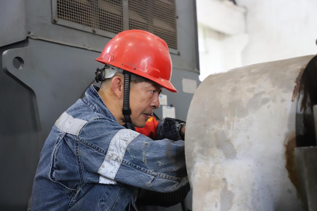 李駿師傅在冶金爐窯修理的崗位上一干就是三十幾年?;貞涀约旱那啻簳r光,李駿說,當(dāng)時同齡的黨員非常少,黨組織生活大都在晚上七點(diǎn)到九點(diǎn)這個階段,用業(yè)余時間開展黨內(nèi)學(xué)習(xí)。身邊的黨員同志,包括父親在內(nèi),個個能吃苦,干活任勞任怨,那種精神一直感染著他。對他來說,入黨的意義,既是年輕人的積極進(jìn)取,也是父輩榜樣力量的指引,更是艱苦奮斗的精神傳承。李駿是銅業(yè)分公司成立后的第一批員工,承擔(dān)著熔煉四座爐子的修理和八臺風(fēng)機(jī)的維護(hù)。從英格索蘭風(fēng)機(jī)到GD風(fēng)機(jī),他把每臺風(fēng)機(jī)的習(xí)性摸得透透的?!皺z修一次,好好維護(hù),能保證爐子和全場各個用風(fēng)的系統(tǒng)順順利利開一年。”把風(fēng)機(jī)維護(hù)好并不是件容易事,李駿師傅輕松的話語里,透出的是責(zé)任和擔(dān)當(dāng)。
