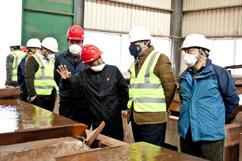 張濤到冶煉分公司,冶煉分公司黨委書記王嚴(yán),經(jīng)理王建偉,副經(jīng)理毛偉陪同考察。