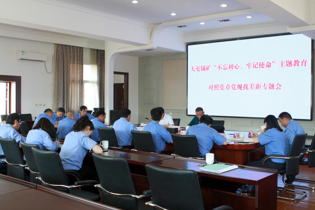 8月20日,大屯錫礦召開“不忘初心、牢記使命”主題教育對(duì)照黨章黨規(guī)找差距專題會(huì),嚴(yán)格對(duì)照黨章黨規(guī),以正視問題的自覺和刀刃向內(nèi)的勇氣,全面深入開展“體檢”強(qiáng)黨性,檢視問題和不足,明確改進(jìn)措施和方向??毓晒局黝}教育第七指導(dǎo)組組長(zhǎng)湯發(fā)、副組長(zhǎng)楊宏賢到會(huì)指導(dǎo)。