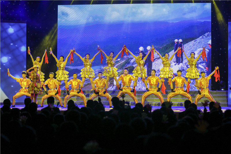 晚會(huì)在舞蹈《光榮與夢(mèng)想》中拉開(kāi)了序幕,隨著音樂(lè)節(jié)奏的加快,青春洋溢的舞蹈、說(shuō)唱、民族舞表演、詩(shī)歌朗誦、才藝展示等節(jié)目,把整個(gè)晚會(huì)的氣氛推向一個(gè)又一個(gè)高潮。臺(tái)下觀眾掌聲如潮,匯成一片青春和歡樂(lè)的海洋。晚會(huì)在百人大合唱《我們是鋅銦人》《云錫之魂》《祖國(guó)不會(huì)忘記》中圓滿落下帷幕。晚會(huì)最后,牛輝帶領(lǐng)兩家公司黨政領(lǐng)導(dǎo)班子、部分管理干部及全體演職人員舉行了“為2019生存發(fā)展而戰(zhàn)”的宣誓儀式。