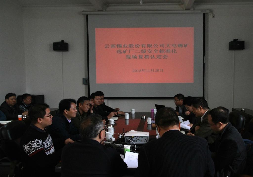 11月28日,云南省應急管理廳副處長李曉晨、丁武成,會同紅河州、個舊市安全生產(chǎn)監(jiān)督管理局等領導專家對大屯錫礦選廠片二級安全標準化運行情況進行現(xiàn)場復核認定。