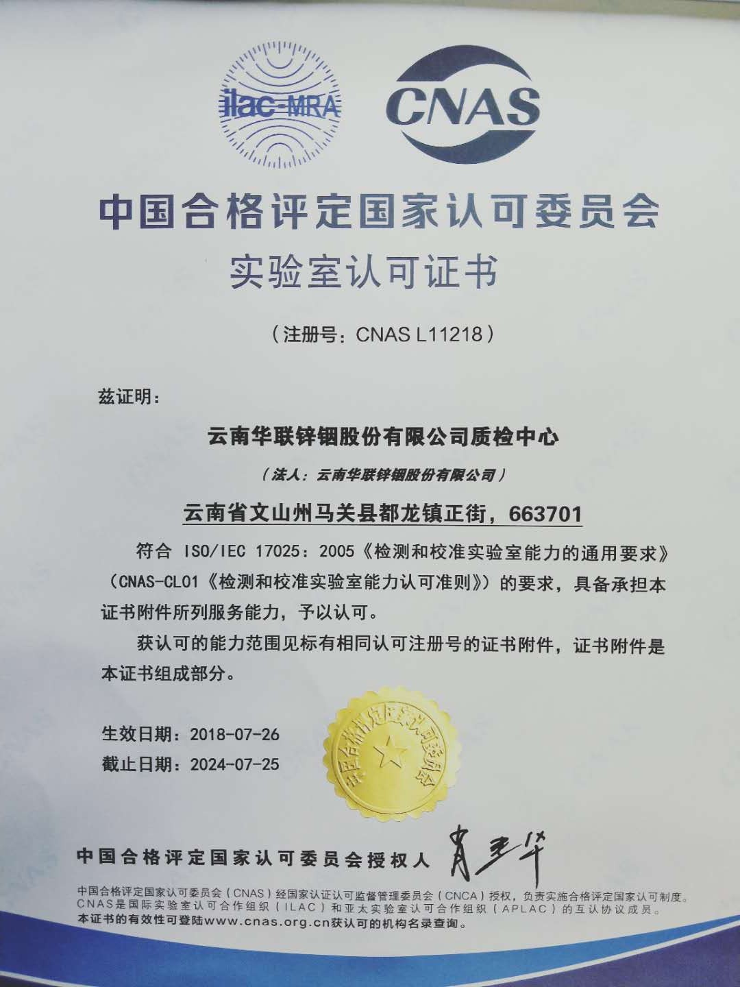 8月3日,華聯(lián)鋅銦公司通過(guò)CNAS實(shí)驗(yàn)室現(xiàn)場(chǎng)評(píng)審和后續(xù)審查,成功獲得實(shí)驗(yàn)室國(guó)家認(rèn)可證書。