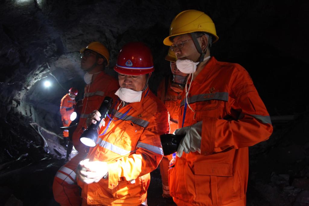 6月29日,考察組一行深入高峰山生產(chǎn)現(xiàn)場(chǎng)查看了矽卡巖硫化礦接觸帶礦、巖情況。在高峰山排班室,考察組在結(jié)合工程圖了解高峰山礦體資源分布、采場(chǎng)布局情況后,深入采場(chǎng)現(xiàn)場(chǎng)取樣,并仔細(xì)查看、分析了礦石類別、巖石性質(zhì)等情況。隨后,考察組又到大陡山露天采場(chǎng)現(xiàn)場(chǎng)進(jìn)行實(shí)地考察。