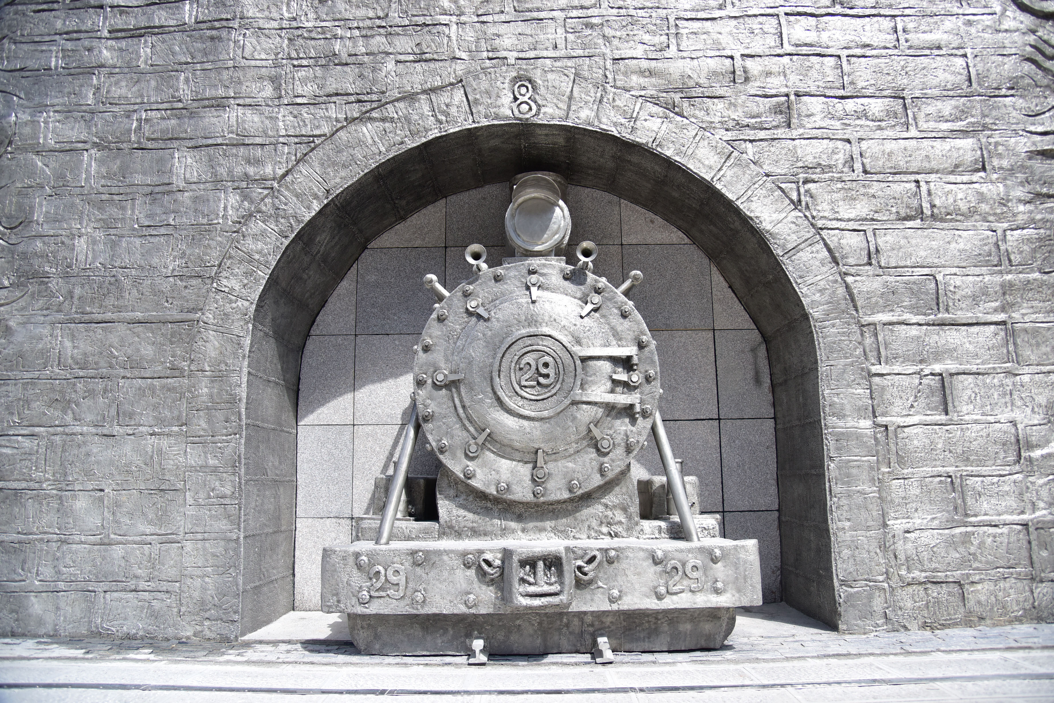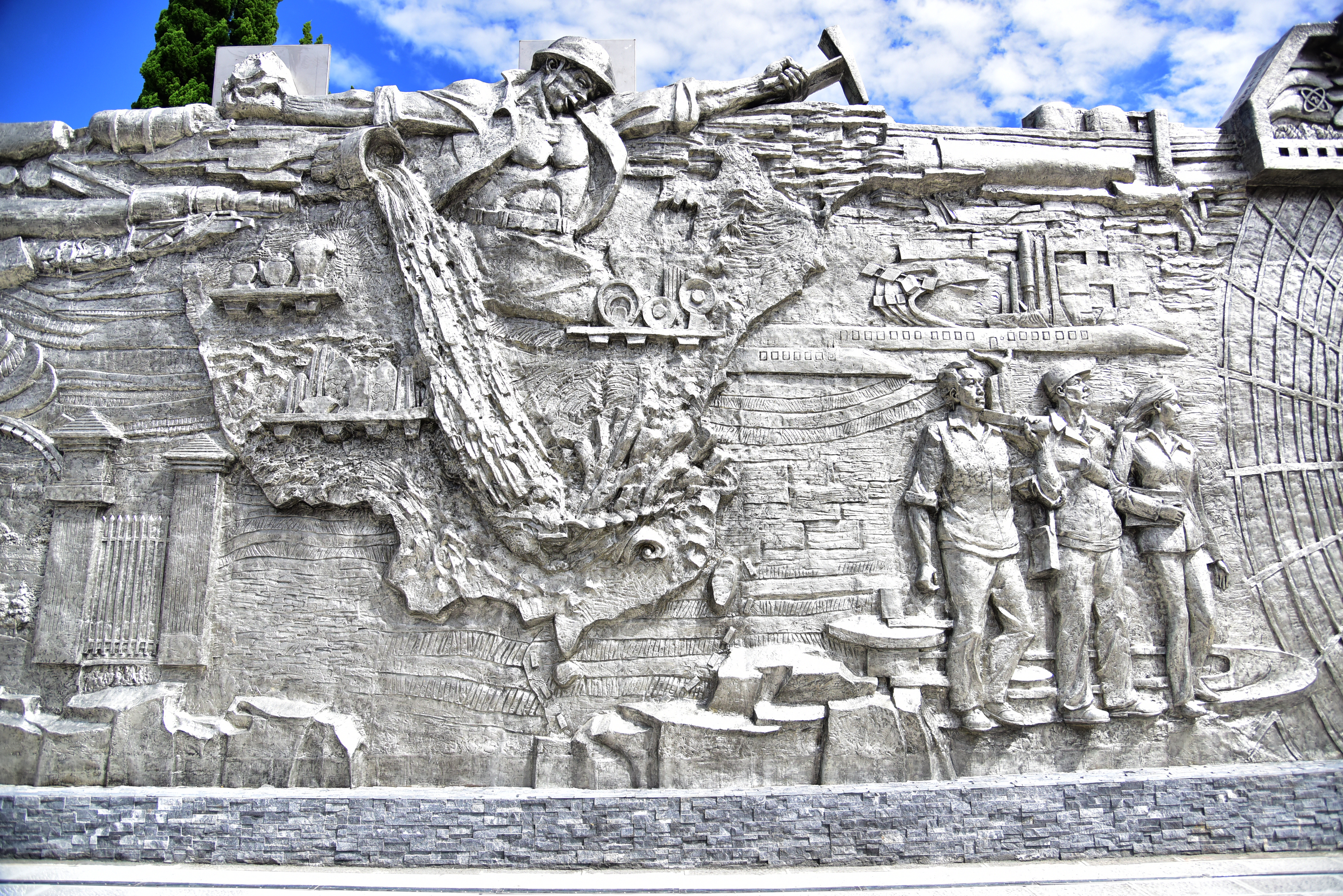 錫礦開采歷史的見證者、舊時人背馬馱的運(yùn)礦方式、不同字體的“錫”字、捧著個舊金湖的雙手、代表哈尼族的吉祥鳥、古老的個舊選廠鐘樓、滇越鐵路、 “云錫三杰”、以熊秉信和丁文江為代表的地質(zhì)專家,29號小火車、8號礦洞……在以英文字母“Y”為中軸的左側(cè)主題浮雕墻上,每一個元素就是一個故事,它們串連在一起仿佛在訴說著“錫映千秋”的歷史輝煌。