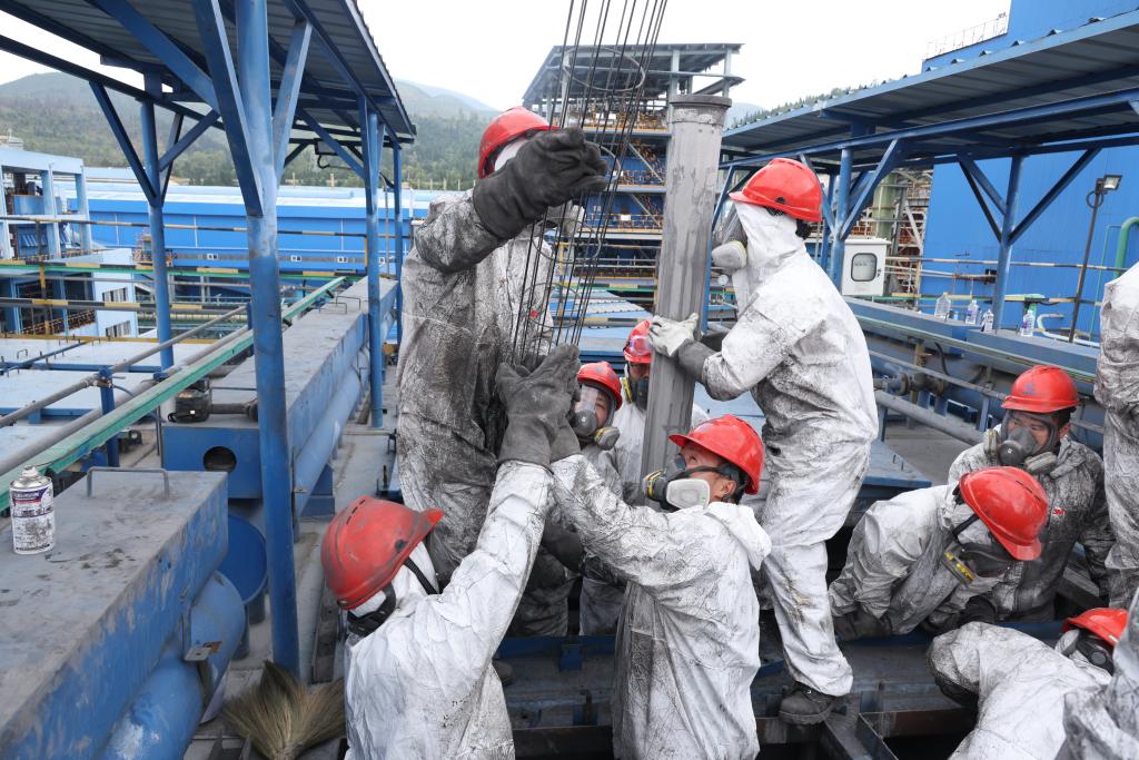 與往年不同的是,此次檢修本著“合理安排項(xiàng)目,縮短停產(chǎn)時(shí)間,細(xì)化檢修程序,確保檢修安全”工作思路,抓住關(guān)鍵環(huán)節(jié),加強(qiáng)部門(mén)聯(lián)動(dòng),建立完善重點(diǎn)項(xiàng)目推進(jìn)機(jī)制,切實(shí)做到急事急辦、特事特辦,確保實(shí)現(xiàn)“一次全面檢修,長(zhǎng)期平穩(wěn)運(yùn)行”目標(biāo),首次實(shí)現(xiàn)錫行業(yè)爆破拆除爐底爐瘤及耐火材料。