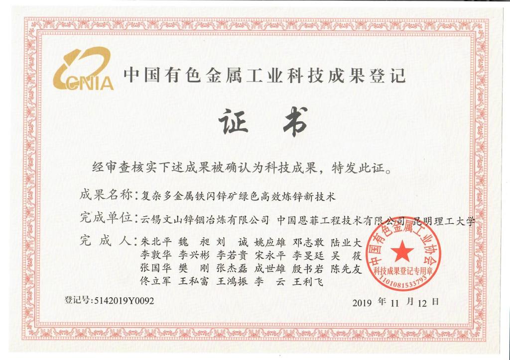 “復(fù)雜多金屬鐵閃鋅礦綠色高效煉鋅新技術(shù)”以SO2還原浸出技術(shù)、赤鐵礦除鐵技術(shù)、硫化鋅精礦與硫鐵礦焙燒聯(lián)合供熱系統(tǒng)等關(guān)鍵技術(shù)為核心,通過硫化礦自氧化放熱反應(yīng)獲得蒸汽作為濕法煉鋅的熱源,避免了化石能源的消耗,實(shí)現(xiàn)了鋅冶煉浸出渣全濕法低碳處理,冶煉過程高效回收鋅、銦、銅、鐵等有價(jià)元素,并從源頭削減危廢的產(chǎn)出。該技術(shù)已整體應(yīng)用于文山鋅銦,穩(wěn)定運(yùn)行3年有余,達(dá)到行業(yè)先進(jìn)水平;電鋅單位產(chǎn)品綜合能耗小于700kgce/t,符合行業(yè)規(guī)范條件、能耗限額標(biāo)準(zhǔn)先進(jìn)值的要求;銅、鐵等有價(jià)元素分別成為高品位銅精礦、赤鐵礦資源化利用,至今無危廢堆存,減污降碳效益顯著。