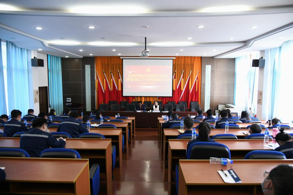 12月8日,控股公司黨委常委、組織人事部部長、錫業(yè)股份黨委書記、副董事長吳君到研究院公司宣講黨的二十大精神。