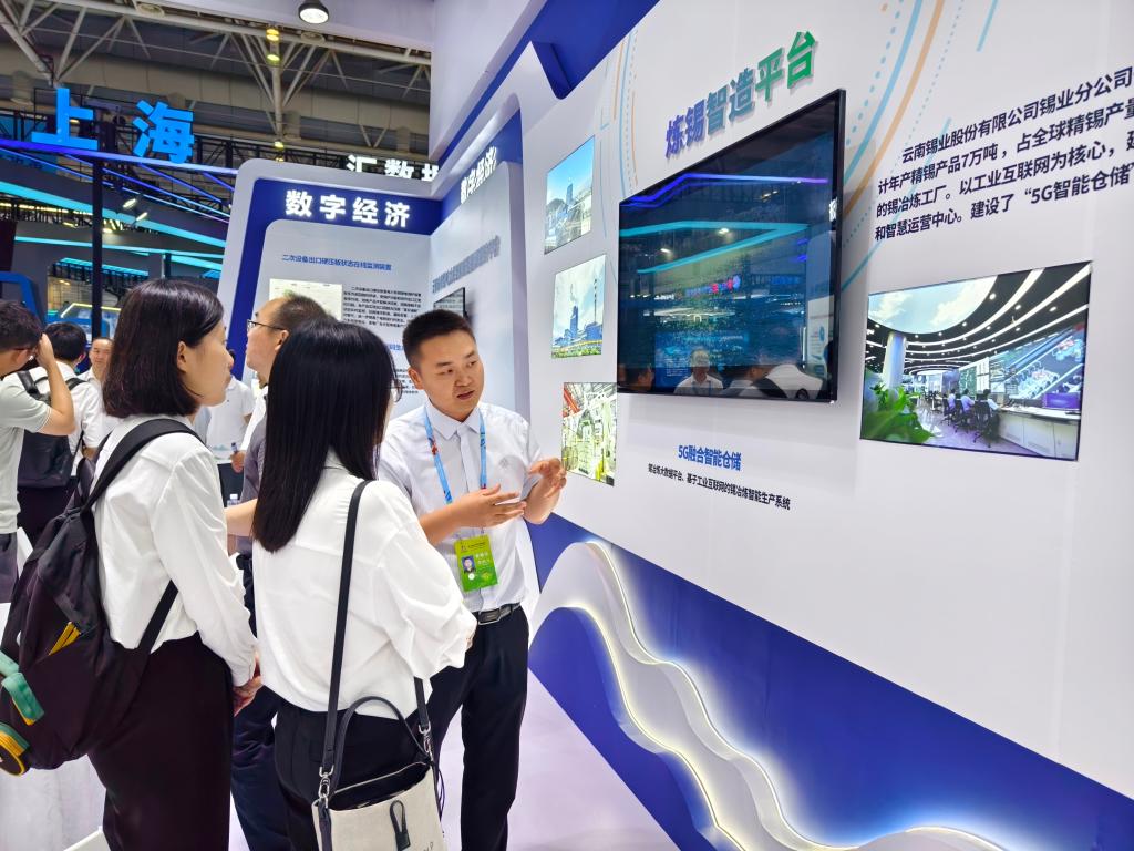 走進(jìn)“美好生活在云南 數(shù)字云嶺綻繁花”數(shù)字云南的主題展廳,只見(jiàn)“數(shù)智”云錫錫冶煉建設(shè)成果活力涌動(dòng)。在錫業(yè)分公司智能制造展區(qū),錫冶煉5G運(yùn)行專網(wǎng)、生產(chǎn)區(qū)域5G全要素連接、5G融合智能倉(cāng)儲(chǔ)、三位一體的數(shù)據(jù)中臺(tái)、“工廠大腦”:智慧運(yùn)營(yíng)中心、MES系統(tǒng)……一個(gè)個(gè)與云錫錫冶煉有關(guān)的數(shù)字工廠的建設(shè)項(xiàng)目,通過(guò)現(xiàn)場(chǎng)宣傳視頻、照片展面和講解員深入解說(shuō),把錫冶煉的“數(shù)智”之處展現(xiàn)的淋漓盡致、亮點(diǎn)紛呈,不斷讓來(lái)自各科技創(chuàng)新等領(lǐng)域的企業(yè)、學(xué)者專家和參觀者由衷稱贊、駐足交流。