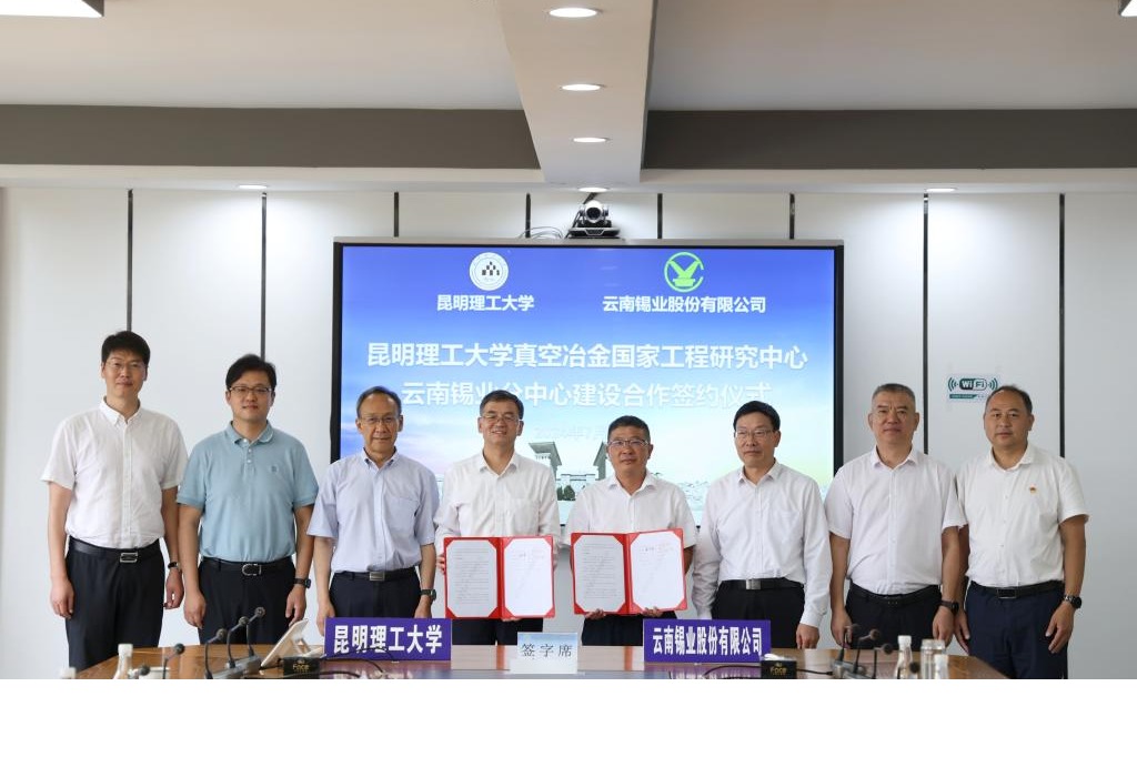7月9日,真空冶金國家工程研究中心云南錫業(yè)分中心合作簽約暨揭牌儀式在錫業(yè)分公司舉行。云錫控股公司黨委委員、副總經(jīng)理宋興誠,昆明理工大學黨委常委、副校長楊斌為真空冶金國家工程研究中心云南錫業(yè)分中心揭牌。