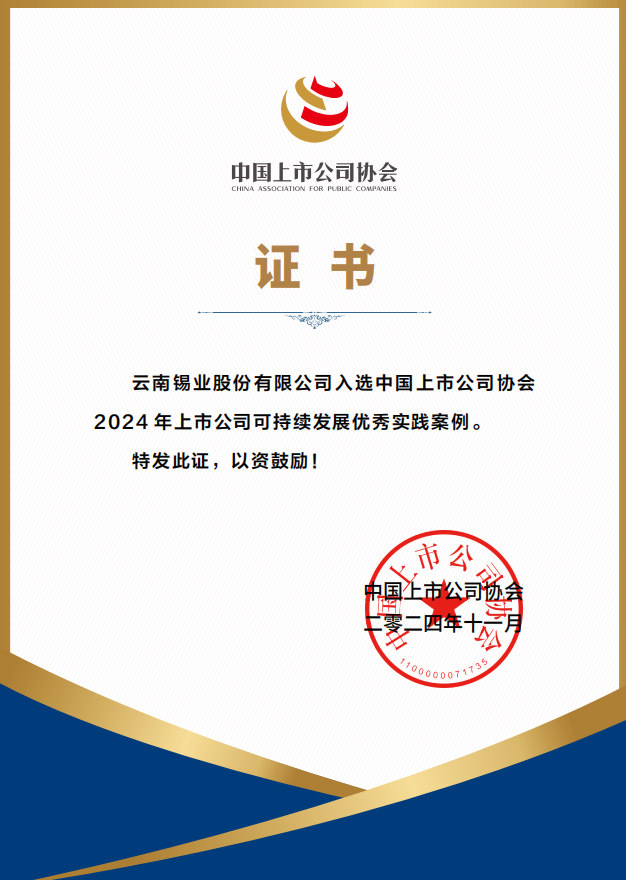 在2024上市公司可持續(xù)發(fā)展案例評(píng)選中,經(jīng)過三輪專家審閱、誠信核查,錫業(yè)股份最終脫穎而出,在創(chuàng)新驅(qū)動(dòng)和科技倫理方面以“數(shù)智引領(lǐng) 以信息化賦能產(chǎn)業(yè)環(huán)節(jié)高質(zhì)量發(fā)展”的案列,成功入選2024上市公司可持續(xù)發(fā)展優(yōu)秀實(shí)踐案例。自2008年以來,錫業(yè)股份在綠色低碳可持續(xù)發(fā)展創(chuàng)新實(shí)踐之路上不斷探索,已連續(xù)16年披露社會(huì)責(zé)任報(bào)告(ESG報(bào)告),于2024年首次發(fā)布英文版ESG報(bào)告且同步完成報(bào)告鑒證,為錫行業(yè)ESG發(fā)展提供引領(lǐng)示范。