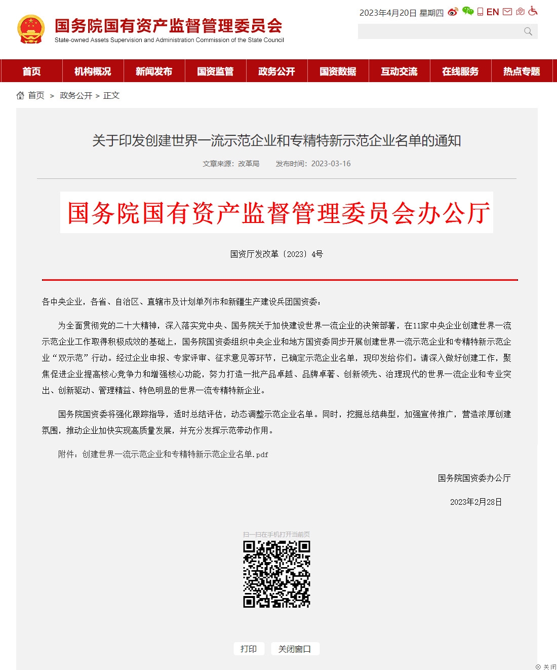 2023年3月份,錫業(yè)股份入選國務(wù)院國資委創(chuàng)建世界一流專精特新示范企業(yè)名單。