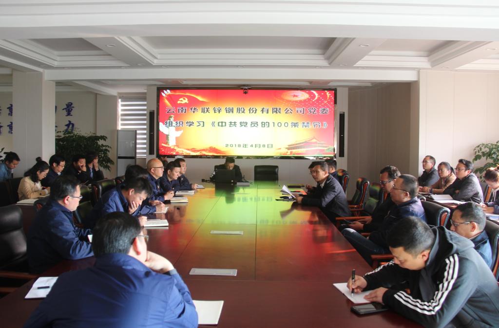 4月8日,華聯(lián)鋅銦公司黨委召開黨委擴(kuò)大會(huì)專題學(xué)習(xí)《中共黨員的100條禁令》,公司領(lǐng)導(dǎo)班子成員、各車間部門負(fù)責(zé)人參加學(xué)習(xí)。
