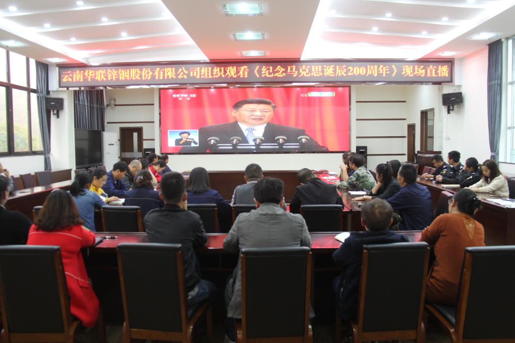 華聯(lián)鋅銦公司黨委組織150余名干部員工在公司五樓會議室及各車間會議室集中收看紀念馬克思誕辰200周年大會直播,在認真聆聽習近平總書記重要講話后,廣大黨員干部群眾備受鼓舞,紛紛表示,在以后的工作中,將切實把習近平總書記重要講話精神貫穿到各項工作中去,進一步增強“四個意識”,堅定“四個自信”,不斷增強責任意識,立足本職,為公司下一步的發(fā)展貢獻自己的力量。(張引娣)