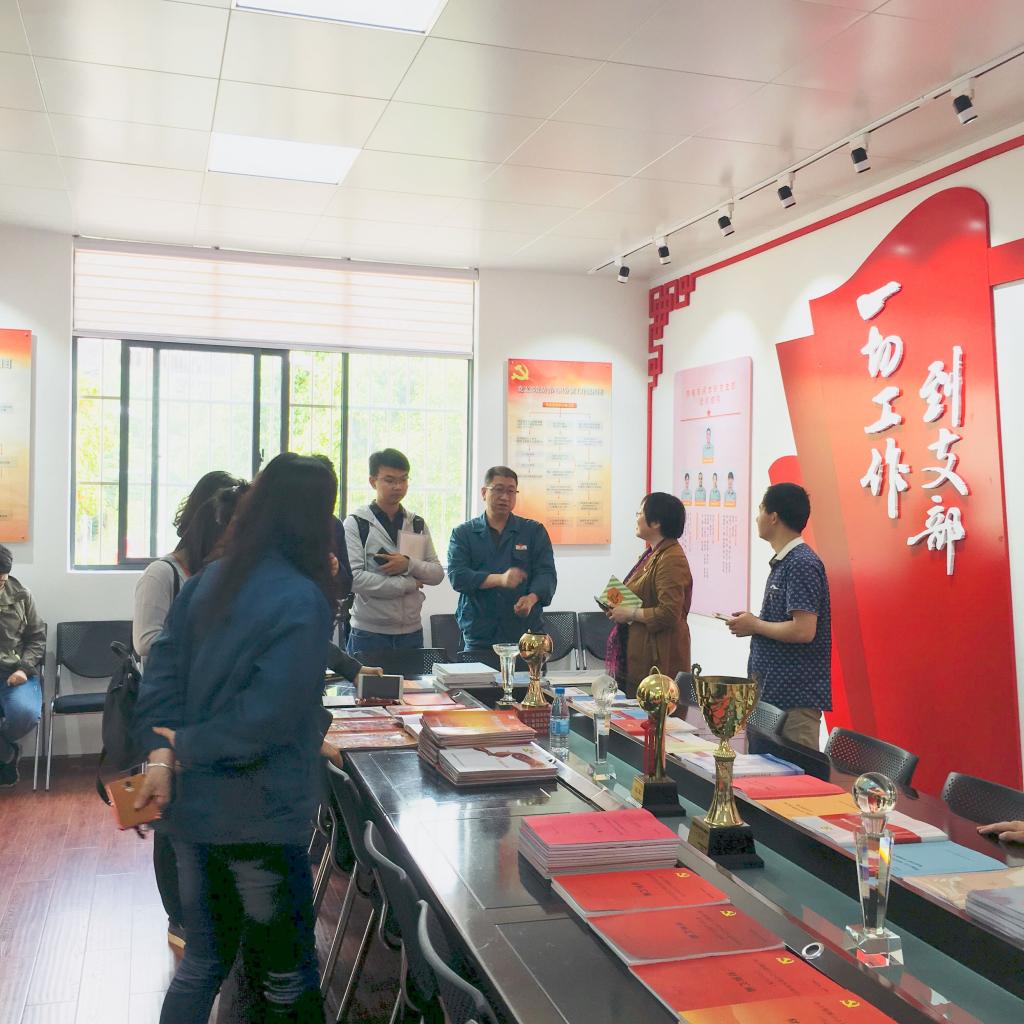 在昆鋼動力能源分公司黨支部工作人員的帶領(lǐng)和解說下,市場管理部黨員參觀了黨建成果展示區(qū)。昆鋼動力能源分公司黨支部按照“十有”標(biāo)準(zhǔn)建成了既管理規(guī)范、又特色鮮明的活動陣地,由黨員活動室、支部工作室、黨建閱覽室及若干展板展臺等組成。其中,黨員活動室采用開放式布局,有能容納約30人的會議桌椅,桌上整齊擺放著支部工作手冊、黨員手冊、黨建文件匯編、黨員活動臺賬、黨建工作臺賬及黨報(bào)黨刊等資料;紅色是主色調(diào),背景墻上布置著黨旗、入黨誓詞、黨員的權(quán)利義務(wù)、黨的紀(jì)律、“三會一課”制度、黨日制度、黨員民主評議制度和黨建業(yè)務(wù)流程等內(nèi)容;左邊墻上懸掛著黨支部組織結(jié)構(gòu)圖、黨支部及黨員公開承諾;右邊墻上布置有黨務(wù)公開欄,包含黨員示范崗、黨員積分考核及黨員責(zé)任公示、黨費(fèi)繳納情況、支部計(jì)劃總結(jié)、主題黨日活動簡報(bào)等內(nèi)容;黨建閱覽室書架上擺放著各種書籍和報(bào)刊雜志,干部員工可現(xiàn)場閱讀或登記借閱。印象最深刻的,還是黨員政治生日的做法,提醒黨員時刻牢記自己的入黨日期,重溫入黨誓詞,自覺遵守黨章,認(rèn)真履行黨員義務(wù)。