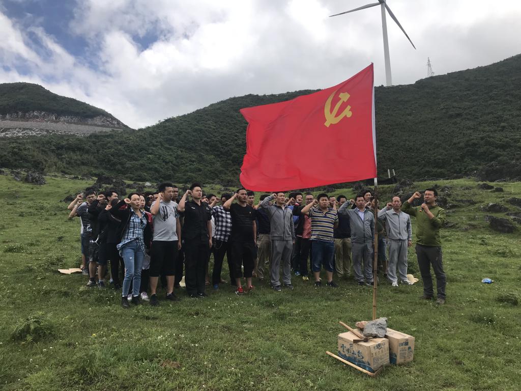 經(jīng)過(guò)3個(gè)多小時(shí)的路程,到達(dá)了目的地。延綿不斷的綠草地,抬手可觸的天空,不遠(yuǎn)處悠悠轉(zhuǎn)動(dòng)的風(fēng)力發(fā)電塔,讓黨員們異常興奮。有的大口呼吸著新鮮空氣,有的在綠地上隨意奔跑,有的登高望遠(yuǎn),有的不停擺造型自拍。一番開(kāi)心后,藍(lán)天白云下,黨員們?cè)邗r紅的黨旗前重溫了入黨誓詞,并圍坐在黨旗周圍齊聲誦讀黨章、學(xué)習(xí)十九大知識(shí),歌唱“沒(méi)有共產(chǎn)黨就沒(méi)有新中國(guó)”“團(tuán)結(jié)就是力量”。隨后還開(kāi)展了丟手絹、泡泡糖游戲,讓大家重拾童趣、歡聲笑語(yǔ)不斷。