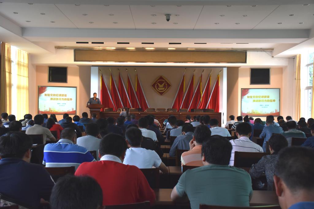 首先,段學強從兩個方面講述了加強黨的紀律建設的重要性和必要性。以習近平同志為核心的黨中央始終高度重視黨的紀律建設,黨的十九大把紀律建設納入黨的建設總體布局,要求持之以恒正風肅紀;加強黨的紀律建設是推進企業(yè)健康發(fā)展的重要措施,是改善和提升執(zhí)行力的有效保證。其次,段學強對加強黨風廉政建設的新要求與新舉措進行了闡述,強調必須運用監(jiān)督執(zhí)紀“四種形態(tài)”,防微杜漸、執(zhí)紀問責,加強對權力運行的制約和監(jiān)督。最后,段學強針對在執(zhí)行力方面存在的5個問題及其7個原因作了根源剖析,闡明強化黨的紀律有助于推動黨員干部的作風轉變和執(zhí)行力提升;并與參會的黨員干部從紀律、規(guī)矩、習慣意識上分享了“9個等于零”的執(zhí)紀理念,引導黨員干部要從思想認識、責任擔當、方法措施上貫徹好黨的十九大關于全面從嚴治黨的新要求,堅持反腐倡廉和改革發(fā)展的“力度統(tǒng)一論”,不斷增強自我凈化的能力,筑牢廉潔從業(yè)的思想防線。