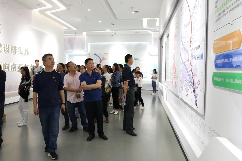 在紅河展覽館,黨員干部在講解員的帶領(lǐng)下,認(rèn)真觀看了《大美紅河》宣傳片,參觀了3大展廳。通過觀看展廳里的一幅幅圖片、一段段影片、一件件展品,大家充分了解了紅河州的自然風(fēng)光、風(fēng)土人情、民族文化、發(fā)展戰(zhàn)略、總體規(guī)劃等;通過親身體驗數(shù)字沙盤、動感科技、4D影像等電子科技互動設(shè)備,大家對家鄉(xiāng)的發(fā)展成就倍感自豪。