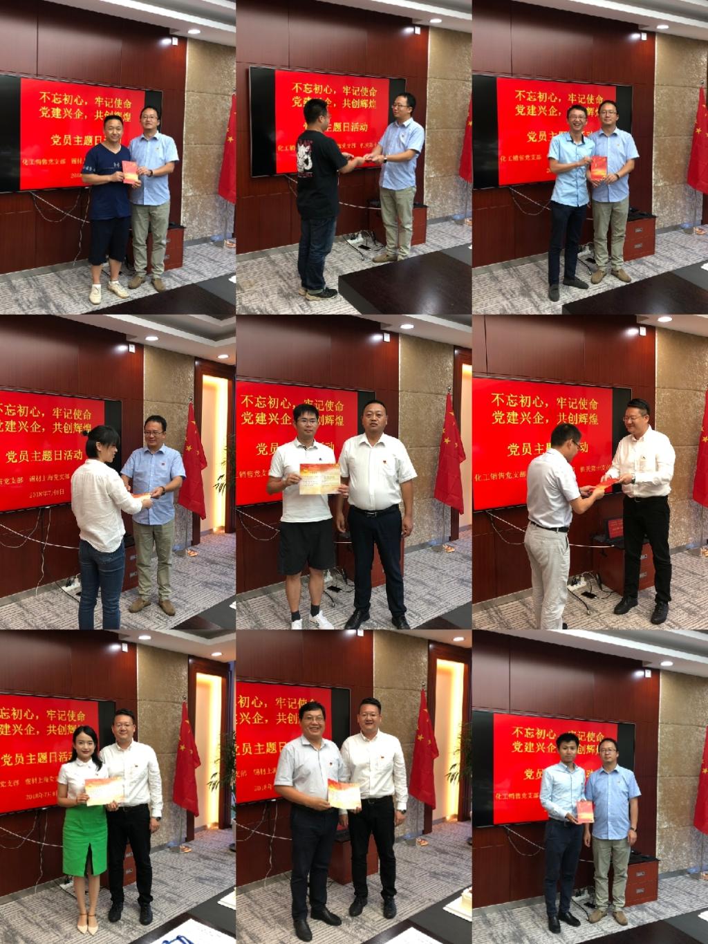 在下午的活動中,各位黨員暢談了對“紅船精神”的感受,滿懷激情的朗誦《可愛的中國》《七月的天空》等紅色詩歌,還開展了“主題知識競賽”;三位黨支部書記為過“政治生日”的黨員同志贈送了生日禮物、送上生日蛋糕;全體黨員再次舉起右手面對黨旗莊嚴(yán)宣誓,重溫入黨誓詞。