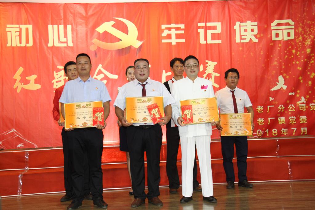 7月17日,為慶祝中國共產(chǎn)黨成立97周年,回顧黨的光輝歷程、謳歌黨的豐功偉績,老廠分公司黨委和老廠鎮(zhèn)黨委在分公司食堂三樓會議室聯(lián)合舉辦以“不忘初心 牢記使命”為主題的紅歌合唱比賽。老廠分公司10支參賽隊和老廠鎮(zhèn)1支參賽隊參加比賽,老廠政企領(lǐng)導(dǎo)、200余名老廠分公司員工及老廠鎮(zhèn)各單位代表觀看了比賽。