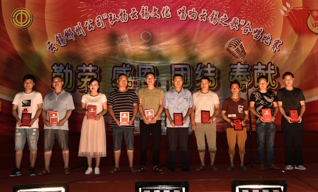 文藝演出在《咱們工人有力量》的齊唱聲中拉開序幕,屋場坪錫礦、總部機關(guān)、高新材料分公司和云湘公司4個合唱隊以整齊的陣容、昂揚向上的精神風(fēng)貌投入到演出中?!队肋h拼搏在一起》《中國中國,鮮紅的太陽永不落》《云錫明天更輝煌》《世紀星光》等12首歌曲,充分展示了各個單位、各個崗位上員工的精神風(fēng)貌,謳歌黨的輝煌歷程和豐功偉績,激發(fā)了廣大干部員工愛國、愛黨、愛企業(yè)的熱情。號召大家以主人翁姿態(tài)積極投身郴州公司“改革突破、持續(xù)扭虧、轉(zhuǎn)型發(fā)展”工作主線中,為企業(yè)生產(chǎn)經(jīng)營良好勢頭和轉(zhuǎn)型發(fā)展再打硬仗、再破堅冰。