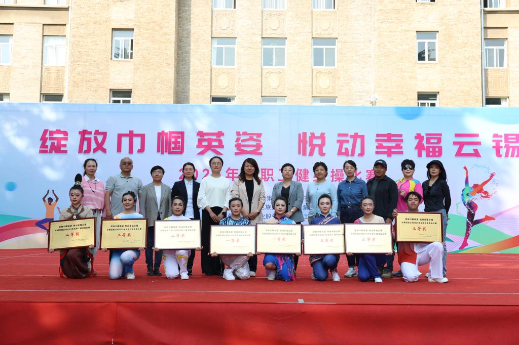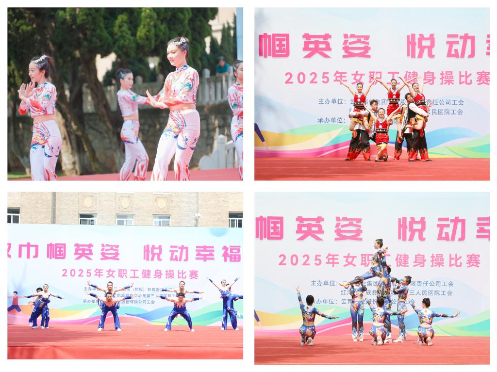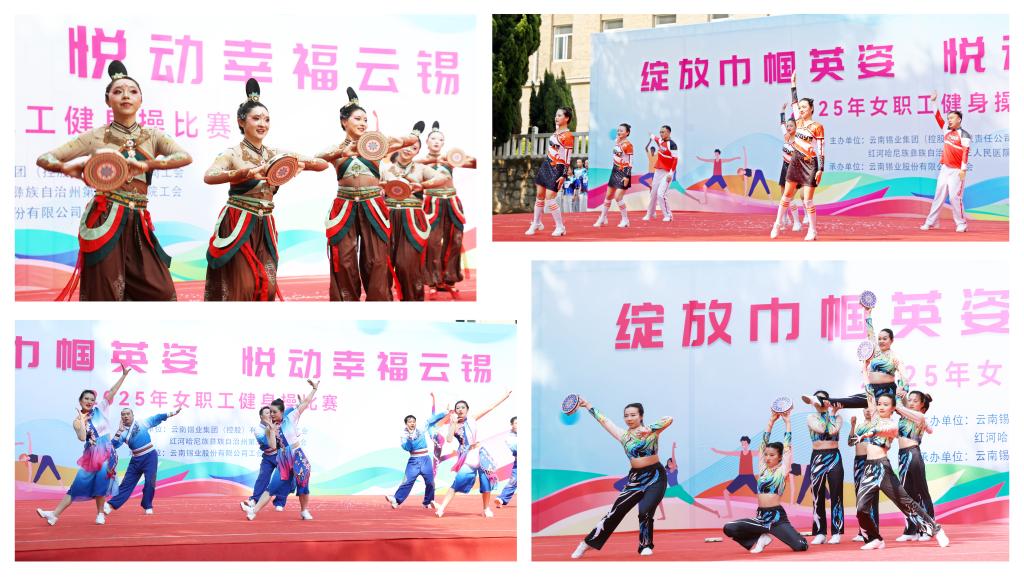 賽事設(shè)置民族健身操規(guī)定套路《同心共筑中國(guó)夢(mèng)》及自編有氧健身操兩大項(xiàng)目。各參賽隊(duì)伍身著統(tǒng)一服裝,精神抖擻,依次登臺(tái)亮相。在第一輪規(guī)定套路比賽中,各隊(duì)把動(dòng)感十足的現(xiàn)代健身操與民族特色元素融合創(chuàng)意編排。伴隨著歡快的音樂節(jié)奏,選手們伸展、跳躍、旋轉(zhuǎn),動(dòng)作流暢自然,充滿力量感與節(jié)奏感,用靈動(dòng)的舞姿和自信的笑容,詮釋著對(duì)健身操運(yùn)動(dòng)的熱愛,展現(xiàn)廣大云錫女職工積極向上、團(tuán)結(jié)協(xié)作的精神風(fēng)貌,充分詮釋巾幗風(fēng)采與健康云錫的主題內(nèi)涵。