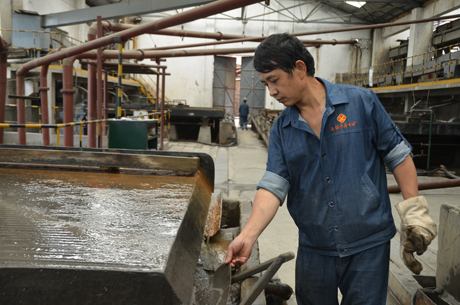 記得有一次浮選給藥管堵塞無法正常給藥,大大影響了浮選指標(biāo)及操作過程,需立即輸通。當(dāng)師傅和我趕到給藥臺時,發(fā)現(xiàn)不是管子塞,而是給藥箱和管子的接口堵塞。當(dāng)時我束手無策,心想只能拿桶來把藥一桶一桶裝到別的地方或倒掉才行,這樣可能要耗費半小時。然而師傅的一個舉動讓我大吃一驚,師傅把手直接伸下去,不到兩分鐘管子就疏通了,給藥恢復(fù)正常。然而藥劑不僅有臭味,而且有損于皮膚和身體。我頓時目瞪口呆,為自己與師傅的差距而慚愧不已。