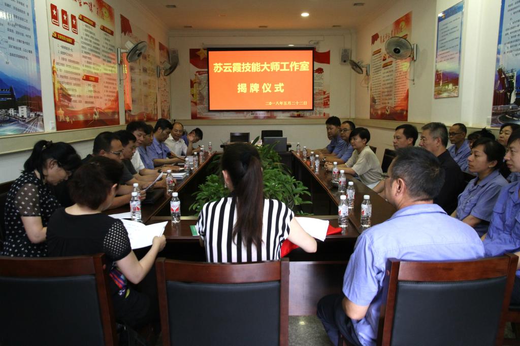 5月22日,省級(jí)“蘇云霞技能大師工作室”揭牌儀式在大屯錫礦選礦車(chē)間舉行,礦黨委副書(shū)記、工會(huì)主席李偉和選礦車(chē)間主任黃繼明共同為工作室揭牌,相關(guān)領(lǐng)導(dǎo)、工作室團(tuán)隊(duì)成員及3對(duì)師帶徒代表共35人參加揭牌儀式。