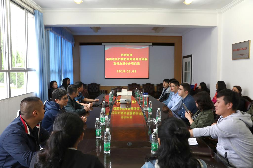 5月5日,中國(guó)進(jìn)出口銀行云南省分行黨委委員、行長(zhǎng)助理黃旭華率團(tuán)員青年,到錫業(yè)股份開展“五.四”青年節(jié)“不忘初心跟黨走,牢記使命建新功”主題活動(dòng)。錫業(yè)股份黨委委員、工會(huì)主席李林、團(tuán)委書記王戰(zhàn)蒙及部分所屬單位團(tuán)委負(fù)責(zé)人熱情接待了來賓。